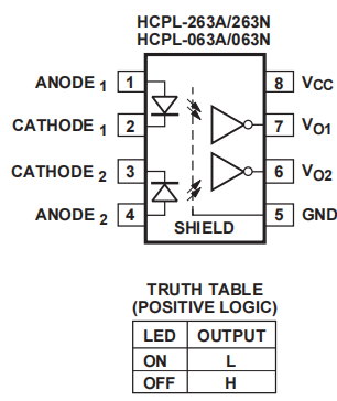 Rodzina bramek optycznie sprzężonych HCPL-261A (także HCPL-063A)